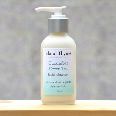 This all natural cleansing lotion has a light refreshing cucumber scent. Made with cucumber hydrosol from Island Thyme farm, green tea extract and colloidal oats, Good at clearing pores and removing makeup. This is a non- irritating and non -drying formula,